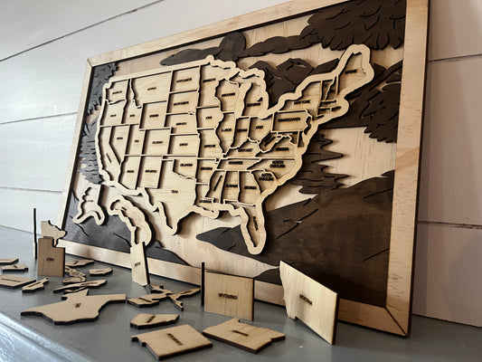 United States Engraved Travel Map